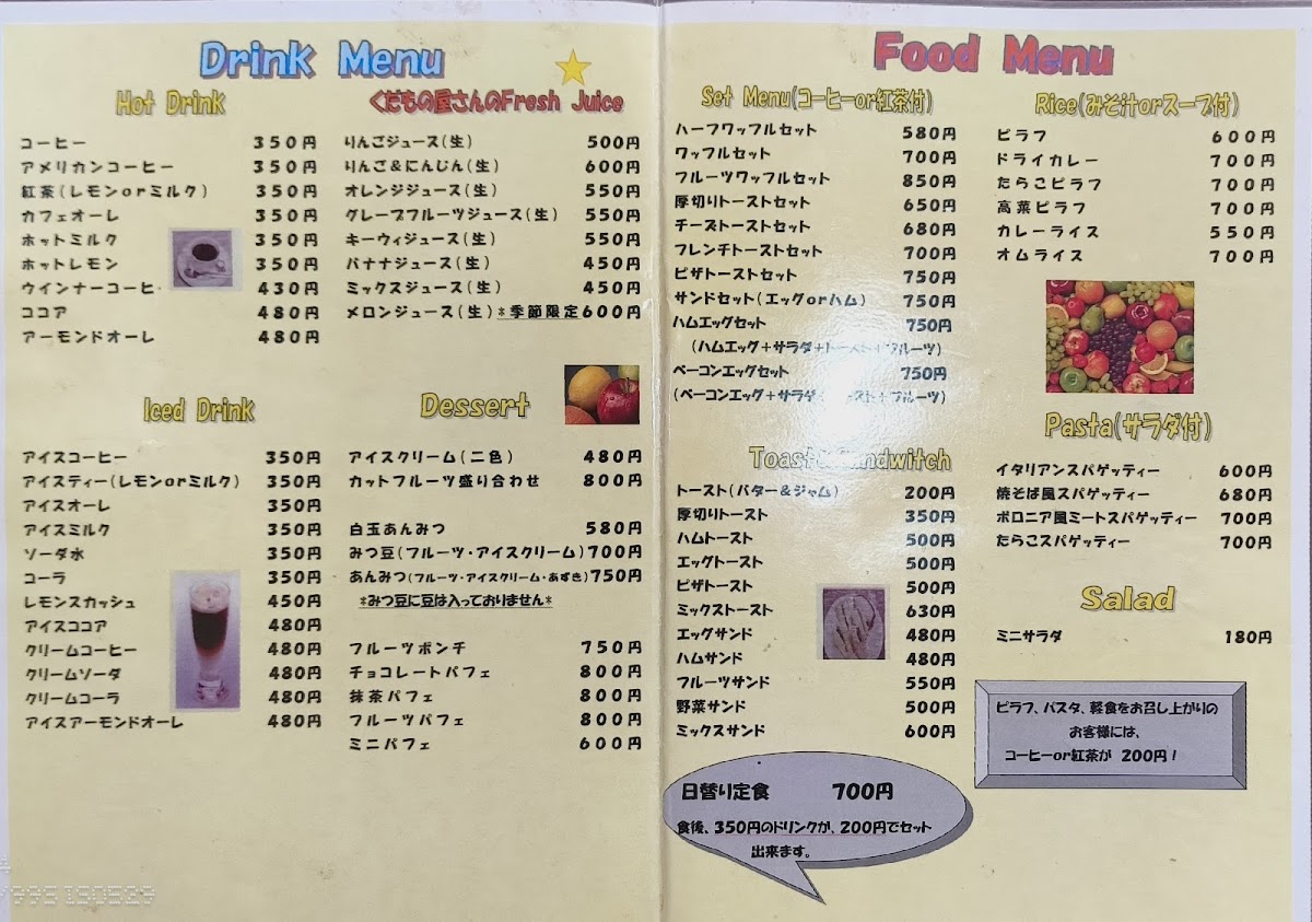 Welcome to Higashiyama, a charming cafe nestled in the heart of Kobe’s Higashiyama shopping district. With an inviting retro ambiance reminiscent of the Showa era, this cafe is both a local treasure and a must-visit for visitors. The menu is a delightful showcase of seasonal fruits, with their signature fruit parfait, priced at just ¥800, stealing the spotlight. Each parfait is crafted with precision, featuring a vibrant array of fresh fruits like strawberries, kiwi, and melons, all beautifully layered with ice cream.